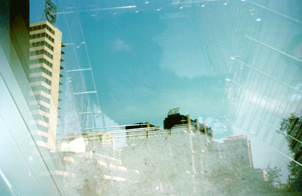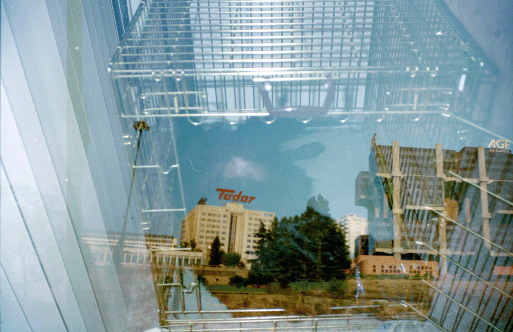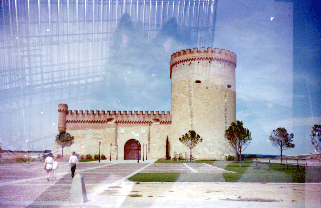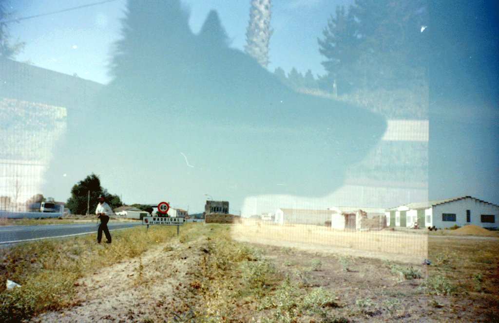 22-23. I've always been saddest that these two photos in particular were double-exposed. That really cool "AGF" building in Madrid looks like it was build from Lego bricks. |