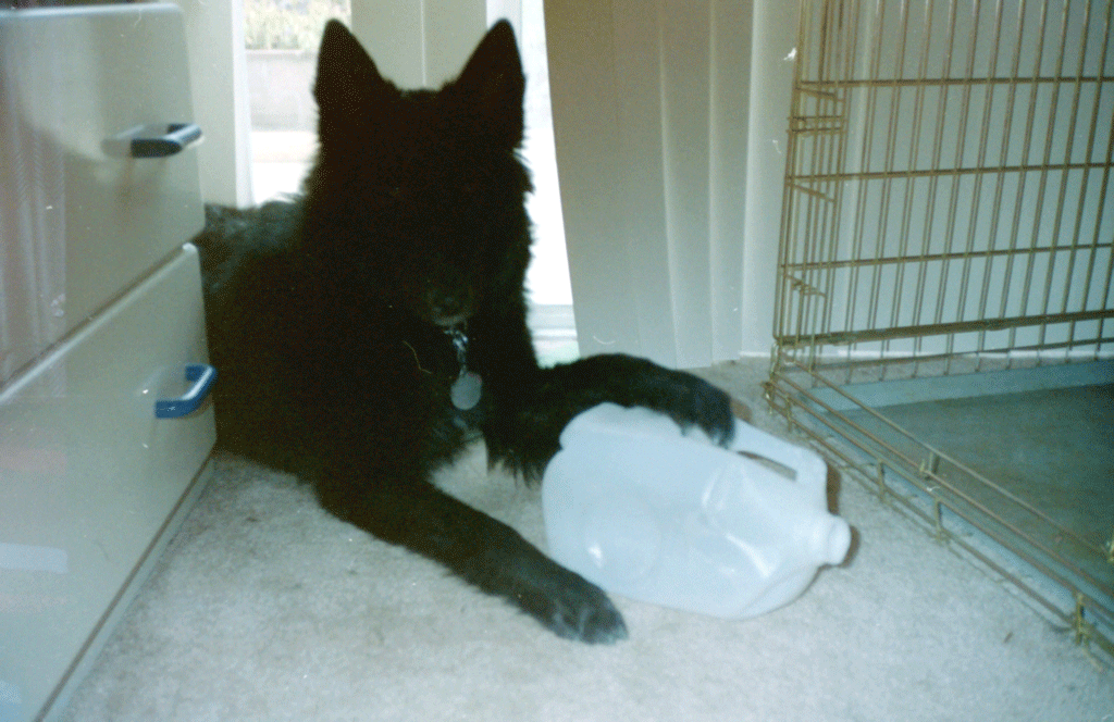 25. Calafía, playing with a plastic milk jug. |