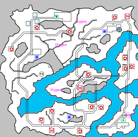 You can cross the bridge, or you can go around on the land, and take out a couple of Warriors over there. Take out the pillboxes, and watch for bugs as you reload from the Ammo Dump in the depression. As you approach the bridge leading east, the Bomber bugs on it explode, taking the bridge with it. So, from here, go north and take the west bridge. Destroy the two bug pillboxes on this island, and leave it via the bridge to the north.