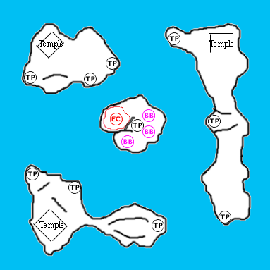 Head then to the east-most stone, and teleport to the south island. Activate the Temple, then return to the north island.