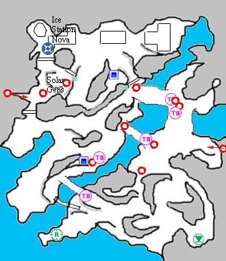 Now head for the waypoint on your map. Major Bishop will tell you to melt the three Solar Generators with your flamethrower. When that's done, the doors will be operational. Head through the right-hand (middle) door, and close it behind you. You'll see a some frozen gun emplacements, so melt them. Reload your ammo at the nearby Ammo Dump. Head towards the waypoint, but stay away from it for a second, while you assign your Cap Troopers to the guns: one above the middle door, one next to the eastern door. (see map)